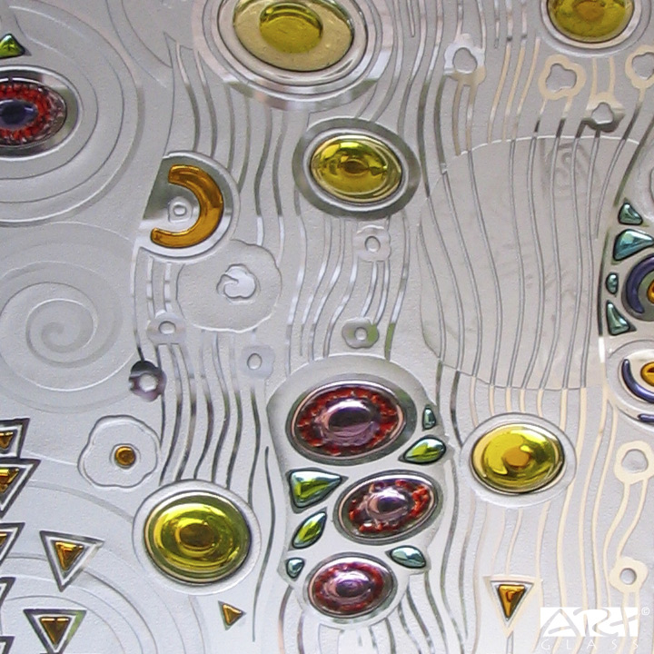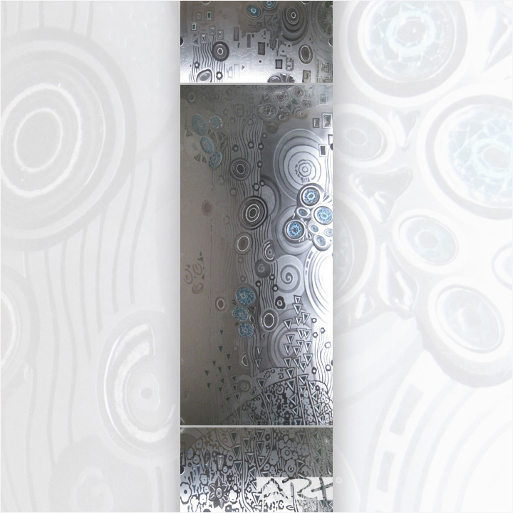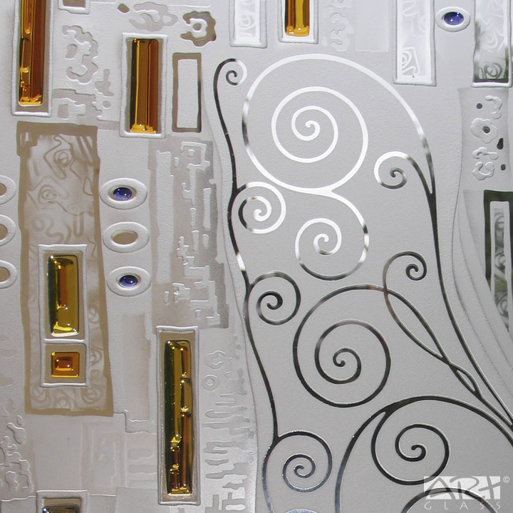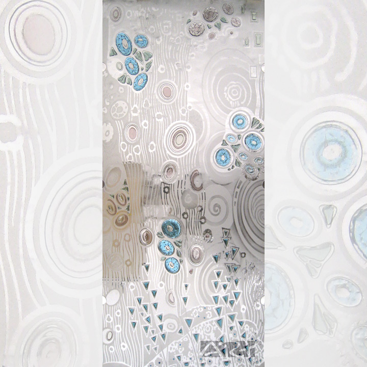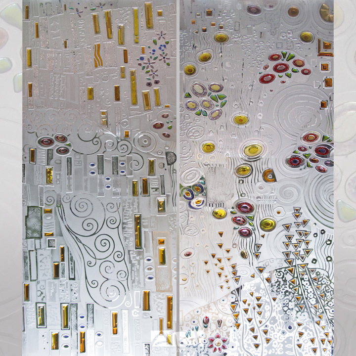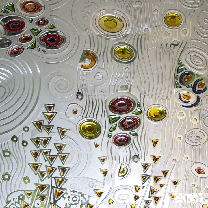 Простой и эффективный творческий приём декорирования аллегорическими абстрактными мотивами функциональных элементов интерьера, стеклянных деталей архитектурных конструкций и предметов декоративно прикладного искусства и сегодня актуален в среде архитекторов и художников.