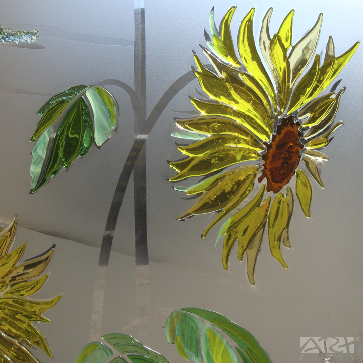 Витражная перегородка «Дверь в лето», несмотря на свою кажущуюся, исключительную функциональность, рождает неповторимое ощущение бесконечного пространства, вызывает тёплые, радостные воспоминания о счастливых, тёплых и солнечных, летних днях.