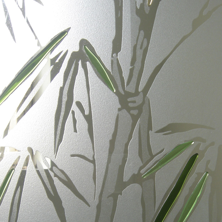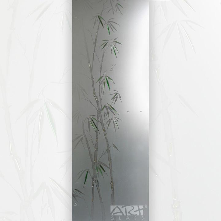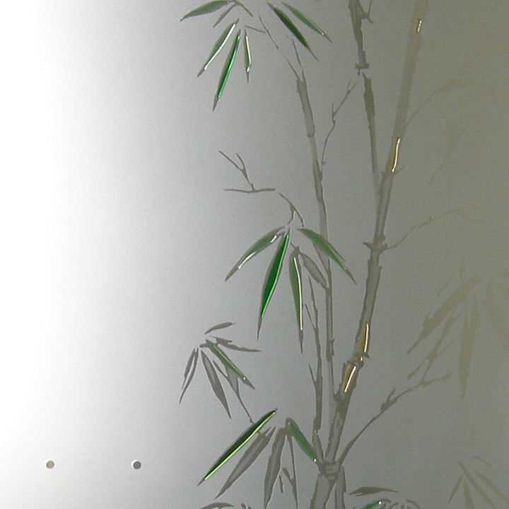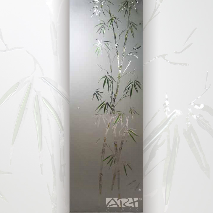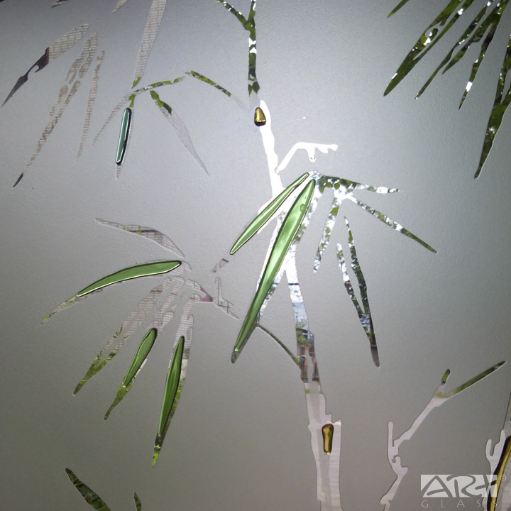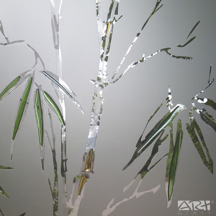 Рисунок « Бамбук » может быть выполнен на прозрачном или матовом фоне. Плотность рисунка, степень прозрачности стекла, цвет и общее количество элементов фьюзинга могут изменяться, по желанию.