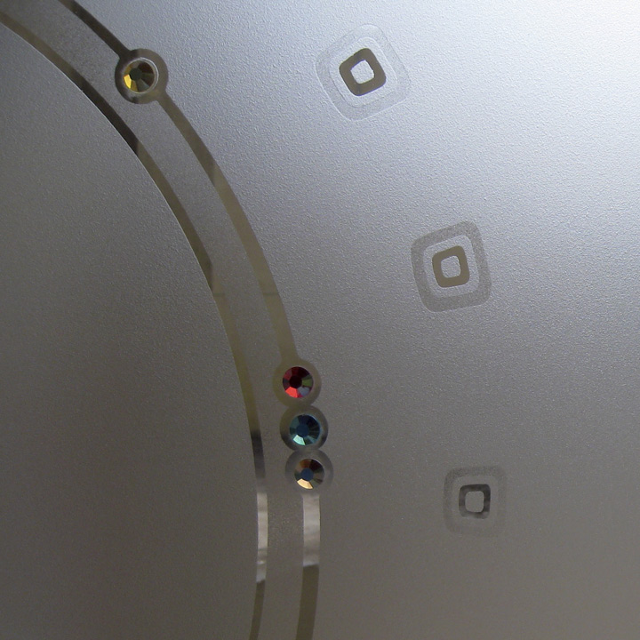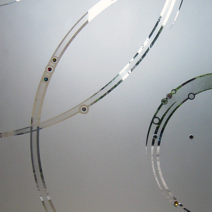 Рисунок «Кольца» может быть выполнен на прозрачном или матовом фоне. Степень прозрачности стекла, цвет, размеры и общее количество кристаллов Сваровски могут изменяться, по Вашему желанию.
