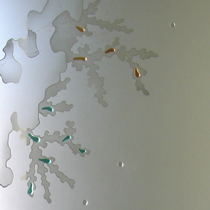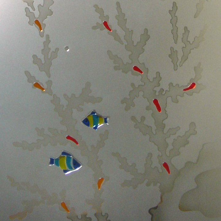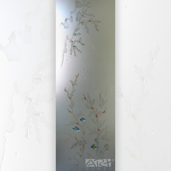 Рисунок «Коралл 1» может быть выполнен на прозрачном или матовом фоне. Степень прозрачности стекла, цвет и общее количество элементов фьюзинга могут изменяться, по Вашему желанию.