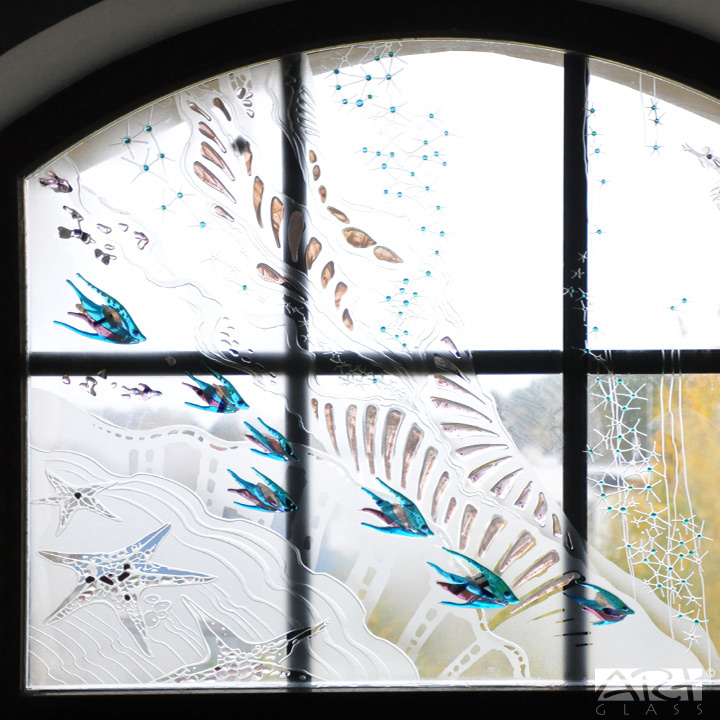 Мы создаем эксклюзивные витражи по индивидуальному проекту в различных техниках: классический витраж, витраж Тиффани, фьюзинг, эрклез, художественное моллированние, глубокое многоплановое пескоструйное декорирование, сборка из фацетных стеклянных элементов на латунный профиль, гравировка, авторская ручная роспись.