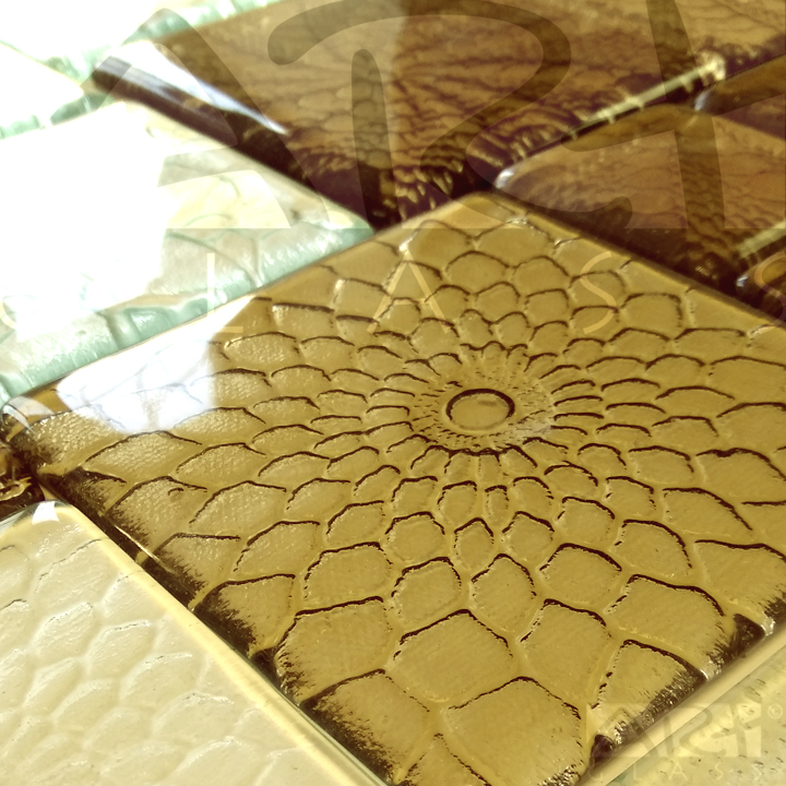 По индивидуальному заказу и ограниченным тиражом в нашей мастерской могут быть изготовлены стеклянные плитки и мозаика любого размера с объёмным рисунком — фьюзингом, стеклянные изразцы и детали из стекла для облицовки отопительных систем, модульная, мозаичная, зеркальная плитка и мозаика нестандартной формы, стеклянная плитка с 3D эффектом, разнообразная фактурная мозаика из моллированного стекла с золочением или мозаика из дихроичного стекла.