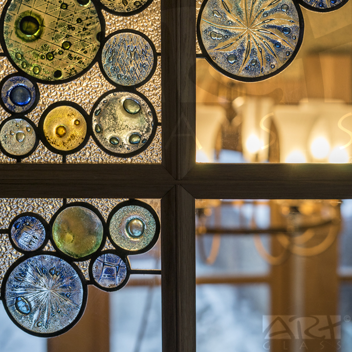 Мастера АРТ-ГЛАСС в создании витражей используют разнообразные художественные и творческие приёмы, разнообразные сочетания объёмных, моллированных деталей, фацетных стеклянных вставок, деталей с гравировкой, эрклёз, стеклянных элементов с авторской обжиговой росписью и филигранно-тонкими стеклянными деталями сложной формы из цветного стекла.
